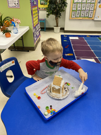 Just in case we didn't have enough candy and sprinkles this week. We put our artistic skills into decorating gingerbread houses.