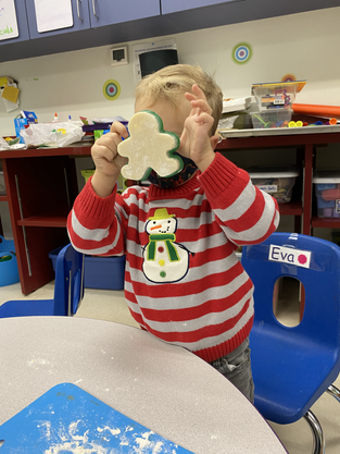 Here we are decorating our own giant gingerbread friends. We then recreated the story of the gingerbread man. You can see the amazing theatrical performance on the Pre-k facebook page.